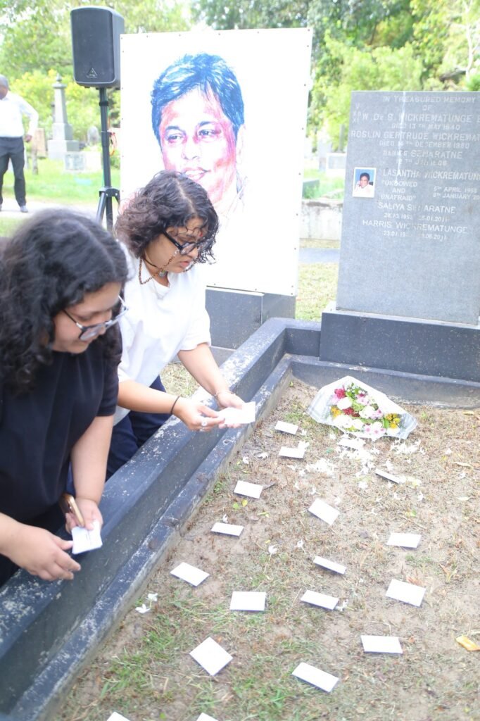 ඒ අනුව අද මෙම සැමරුමට එක්ව සිටි ලසන්ත වික්රමතුංග මහතාගේ පවුලේ ඥාතීන් ඇතුළු පිරිස පැවසුවේද වසර ගණනාවක් පුරා සොයමින් සිටින යුක්තිය වත්මන් ආණ්ඩුවෙන් බලාපොරොත්තු වන බවයි.