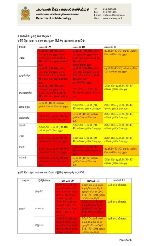 ඒ අනුව 2026 ජනවාරි 10 වනදා පෙරවරු 04.00 දක්වා වලංගු වන පරිදි මෙම රතු නිවේදනය නිකුත් කර තිබේ.
