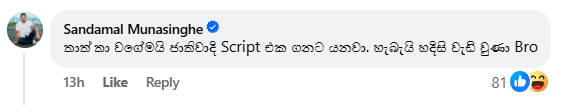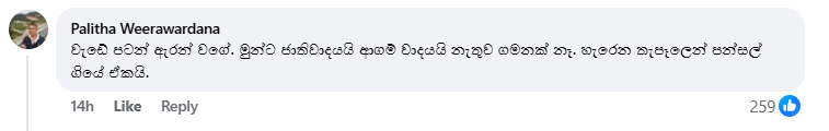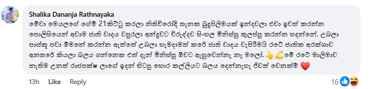 මෙම ෆේස්බුක් සටහන විවේචනය කරමින් විශාල වශයෙන් අදහස් දක්වා දැඩි දෝෂාරෝපණ මන්ත්රීවරයා වෙත එල්ල කර තිබේ. ප්රතිචාර 2300කට අධික ප්රමාණයක් ලබා දී ඇති අතර ඒවායේ පොදු විවේචනය ලෙස සඳහන් කර ඇත්තේ, ජාතිවාදය උපයෝගී කරගනිමින් බලය ලබා ගැනීමට කරන වෑයම නවතා දමන ලෙසයි.