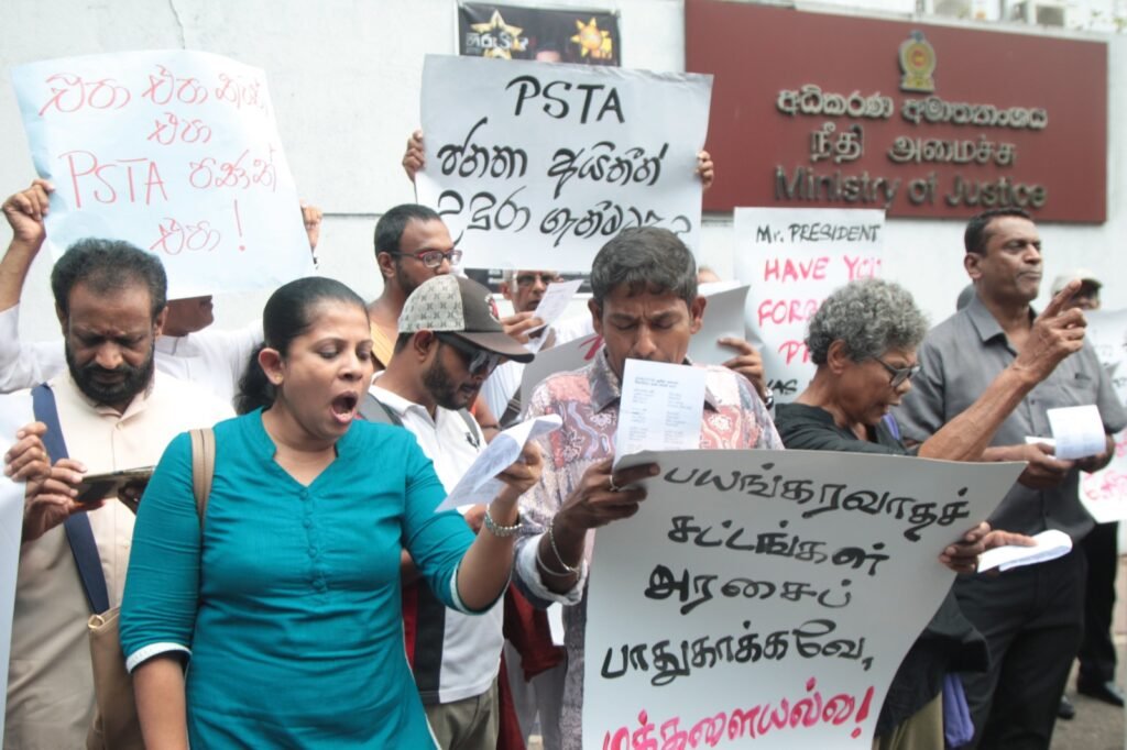 සියලුම ත්රස්ත පනත් හකුළා ගන්නා ලෙස බලකරමින් අද (27) අධිකරණ අමාත්යාංශය ඉදිරිපිටදී විරෝධතාවක් පැවැත්විය.