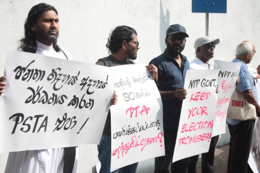 සියලුම ත්රස්ත පනත් හකුළා ගන්නා ලෙස බලකරමින් අද (30) අධිකරණ අමාත්යාංශය ඉදිරිපිටදී නිහඬ විරෝධතාවක් පැවැත්විය.
