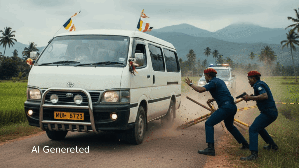කෙසේ වෙතත් පොලිසිය විසින් අහසට වෙඩි තබා රථය නැවැත්වීමට උත්සාහ කළද නොනවත්වා ධාවනය කර ඇත.