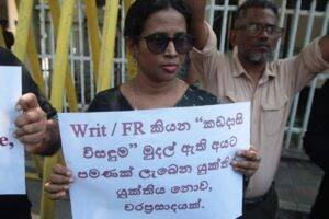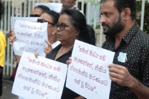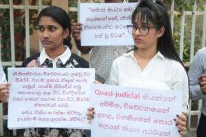 නීතිඥයින්, සමාජ ක්රියාකාරිකයින් ඇතුළු පිරිසක් එම විරෝධතාවට එක්ව සිටියහ.
