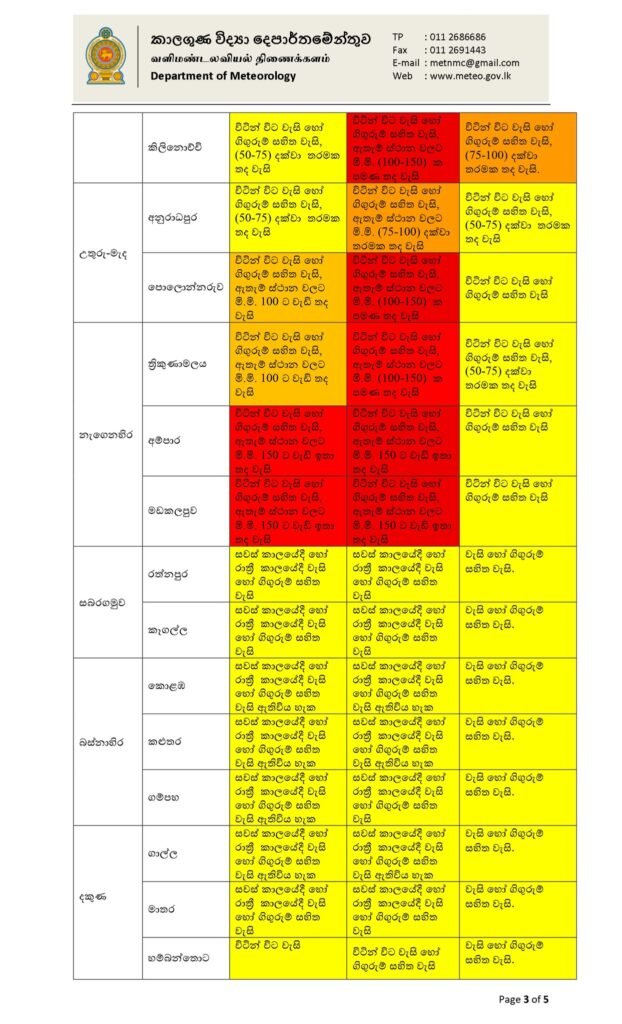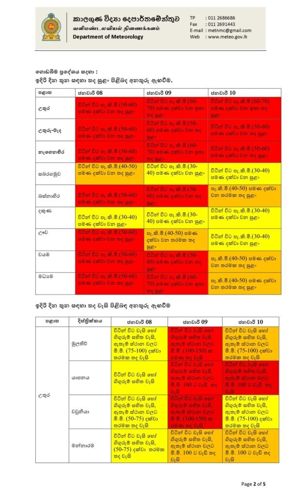 එමෙන්ම නැවත දැනුම් දෙනතුරු දිවයින වටා ගැඹුරු සහ නොගැඹුරු මුහුදු ප්රදේශවල ධීවර සහ නාවික කටයුතුවලින් වැළකී සිටින ලෙසද කාලගුණවිද්යා දෙපාර්තමේන්තුව උපදෙස් දෙයි.